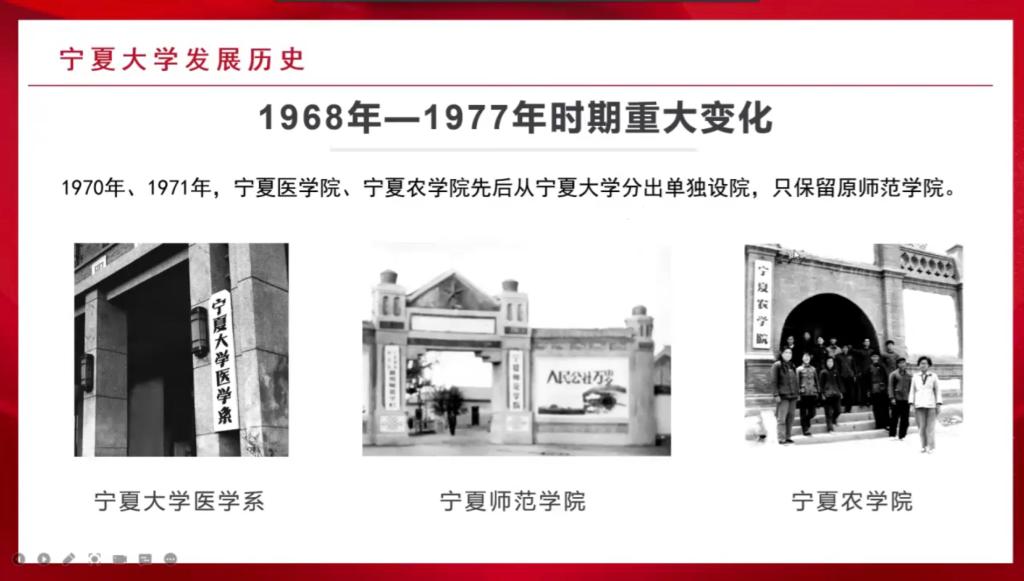 的发展历史,从艰苦创业时期到经历改革开放时期,再进入21世纪后快速发展,一代又一代宁大人以坚强的沙枣树精神艰难前行,为宁夏、西北地区乃至全国培养人才,贡献力量。