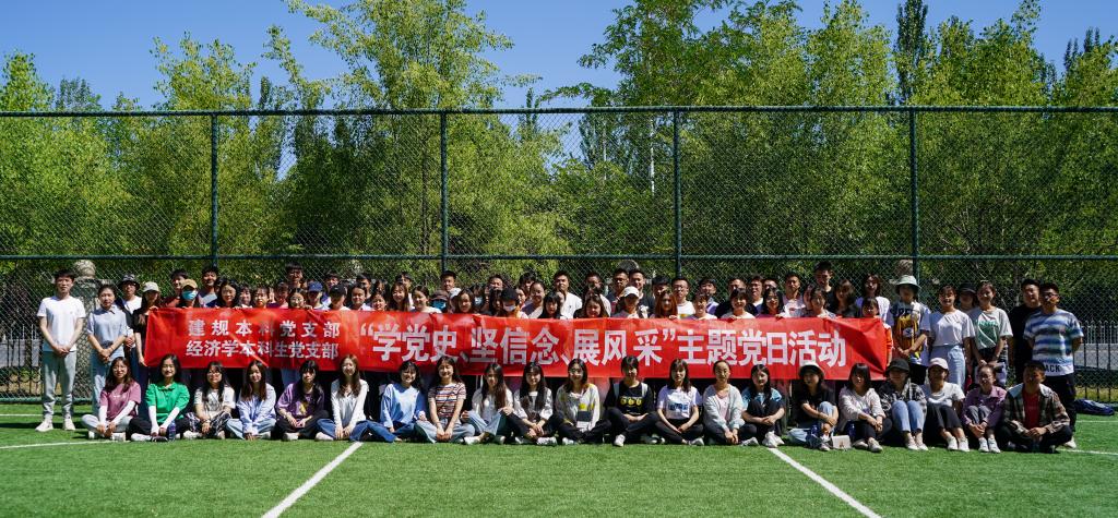 经济学本科生党支部在贺兰山校区小足球场联合举办了“学党史、坚信念、展风采”主题党日活动。建规本科党支部书记蒋宇欢,经济学本科生党支部书记何韶华,建规本科党支部、经济学本科生党支部全体党员参加了此次活动。建规本科党支部组织委员、经济学本科生党支部冀孟博、田雯雯主持活动。