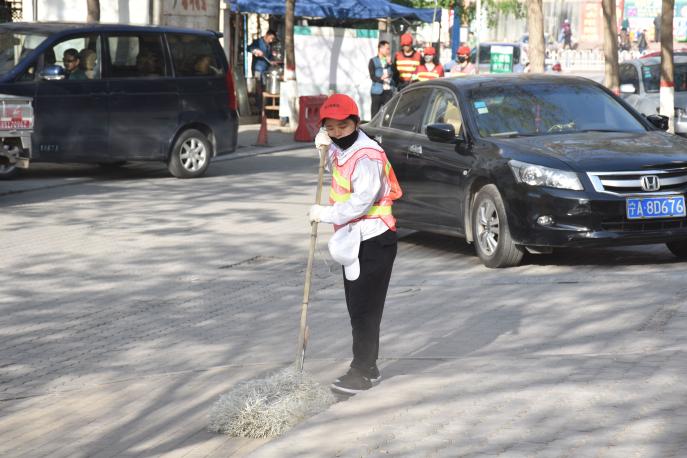 发展对象分为两组,分别在同心北街、怀远路、文萃街等街道进行清扫。第一组成员于上午7点30分集合完毕,开始环卫实践。同学们踏着朝阳,穿着环卫工作服,带着红色帽子,在领取了扫帚、垃圾夹等工具后开始了热火朝天的清扫工作。他们有的清扫街道,有的拣拾散落的垃圾,有的将垃圾倒入垃圾车内,虽烈日炎炎,同学们大汗淋漓却干劲十足,经过一天的清扫,街道焕然一新,经过的路人们纷纷投来赞许的目光。