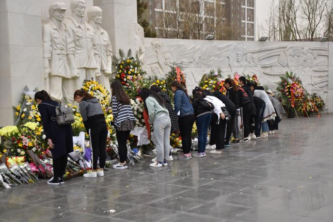 学生工作办公室何韶华老师带领入党积极分子和发展对象163人赴银川市烈士陵园开展清明祭扫活动。