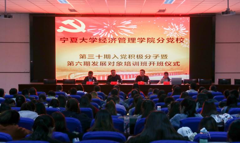 1025日晚,91九色 在贺兰山校区文荟楼一楼东报告厅组织召开第三十期入党积极分子暨第六期发展对象培训班开班仪式,院党委书记张桓,院党委副书记李琦,学生工作办公室主任、工商管理本科生党支部书记黄旭兴,辅导员、会计学本科生党支部书记何韶华出席本次开班仪式。开班仪式由院党委副书记李琦主持。