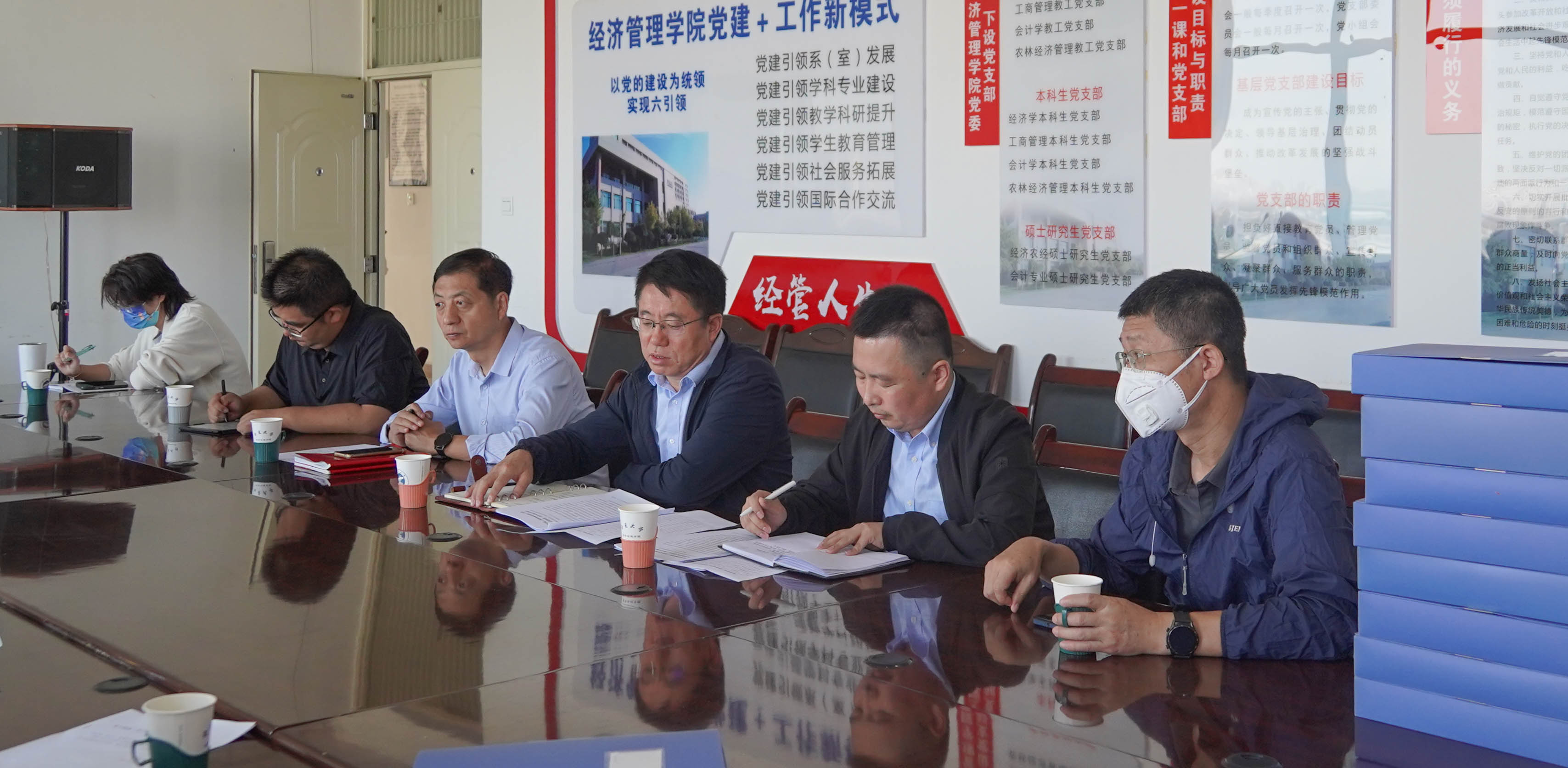 (西部发展研究院)党委党员基本情况、组织建设情况、党员发展等情况,以及目前学院党建标杆院系、样板党支部建设情况和申报“五星级基层党组织”的进展和存在的问题。各党支部书记汇报了本支部党小组开展的特色活动情况。