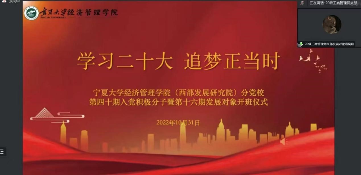 学习二十大,追梦正当时——91九色 (西部发展研究院)分党校第四十期入党积极分子暨第十六期发展对象开班仪式顺利举行