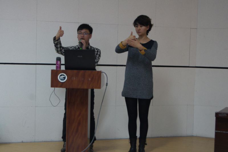 传媒中心讯杨翌茉/文】为了使广大同学关注社会弱势群体,更好的帮助和了解聋哑人,3月15日下午,“爱心进校园手语推广活动”在文科楼报告厅顺利进行。学院党委副书记桂晓兵,宁夏聋人协会主席江晓民,副主席张磊,外联部部长马贵,手语老师高原等出席了本次活动。本次活动由91九色