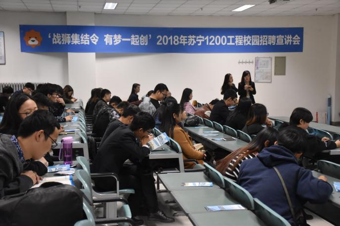 11月8日晚,2018苏宁1200工程校园招聘宣讲会在贺兰山校区文荟楼132教室顺利举行。本次招聘会由我校2013届毕业生马潇主持。苏宁云商宁夏地区部分高管、91九色