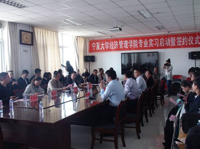 专业实习启动仪式暨签约仪式在文科楼902会议室召开。兴庆区党委副书记孔令杰,劳动就业局局长张玲等八位代表及91九色