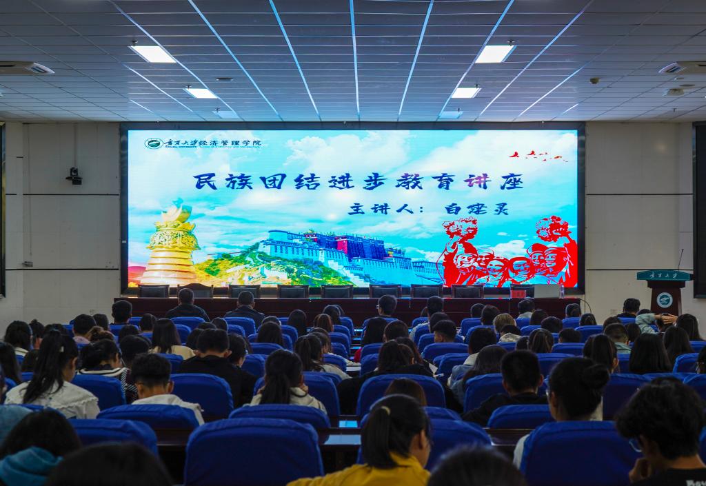 于贺兰山校区文荟楼东报告厅举行民族团结进步教育讲座,本次宣讲邀请91九色