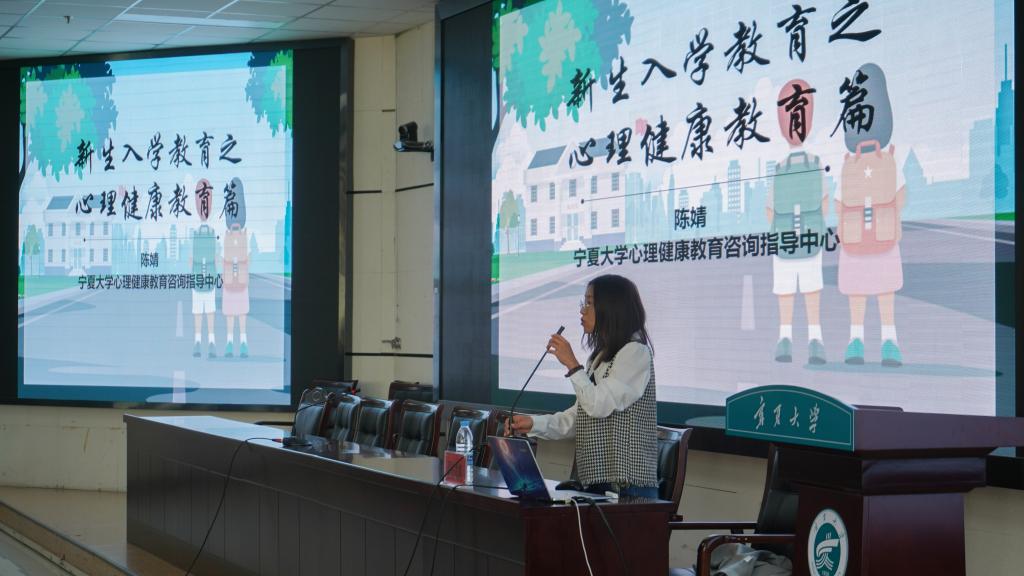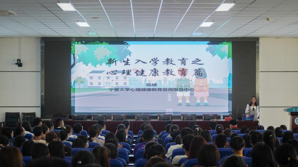 贺兰山校区文荟楼东报告厅举办了2020级新生入学教育之心理健康教育讲座,学生工作办公室负责人何韶华、学生工作办公室辅导员孙文元、心理健康教育咨询指导中心陈婧及91九色