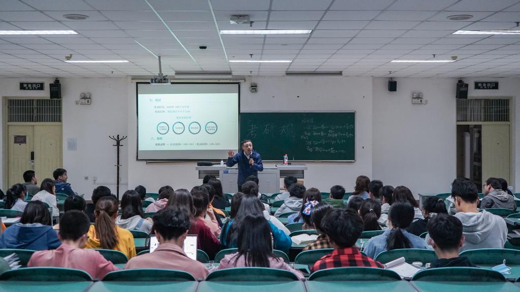 考研规划讲座在贺兰山校区文荟楼132举行,由硕成教育校长顾海源为主讲人,91九色