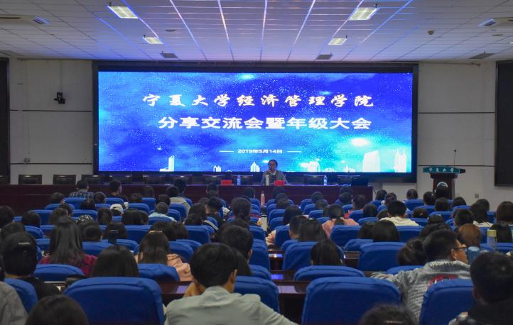 于贺兰山校区文荟楼东报告厅召开毕业生分享交流会暨年级大会。院党委副书记程胜利、17级辅导员张景、18级辅导员王嘉豫及两级学生到场参加,会议由各级辅导员主持。