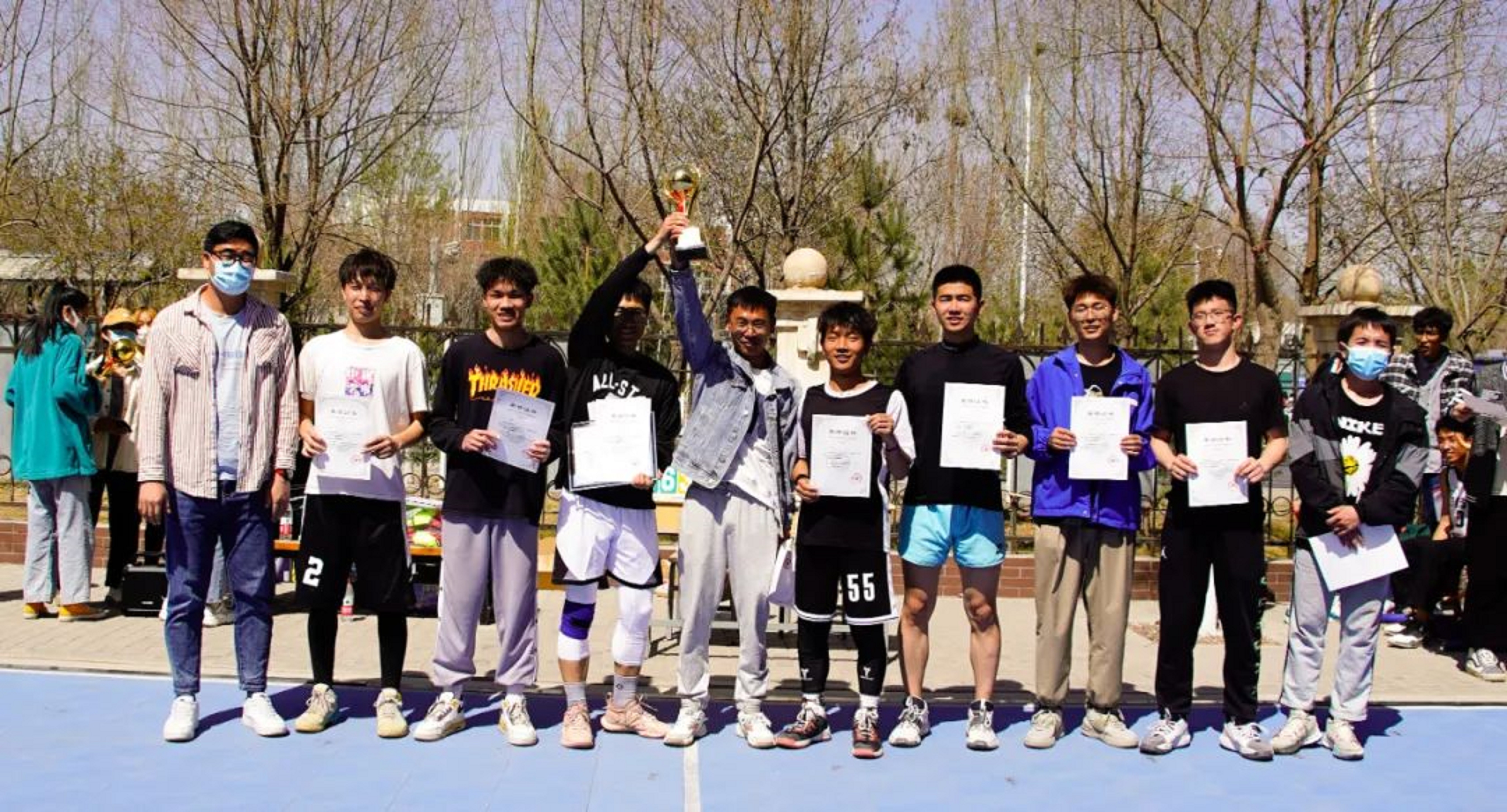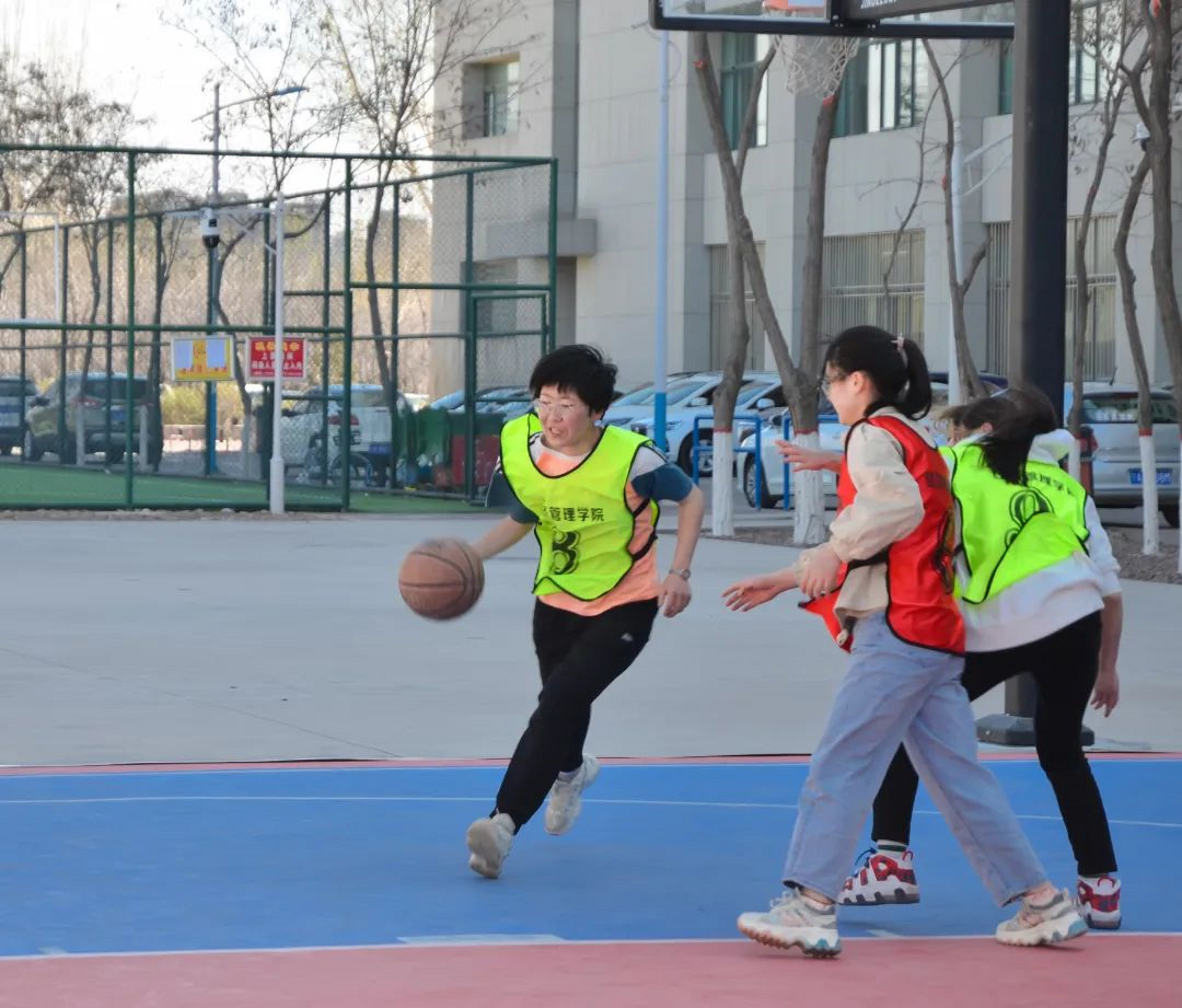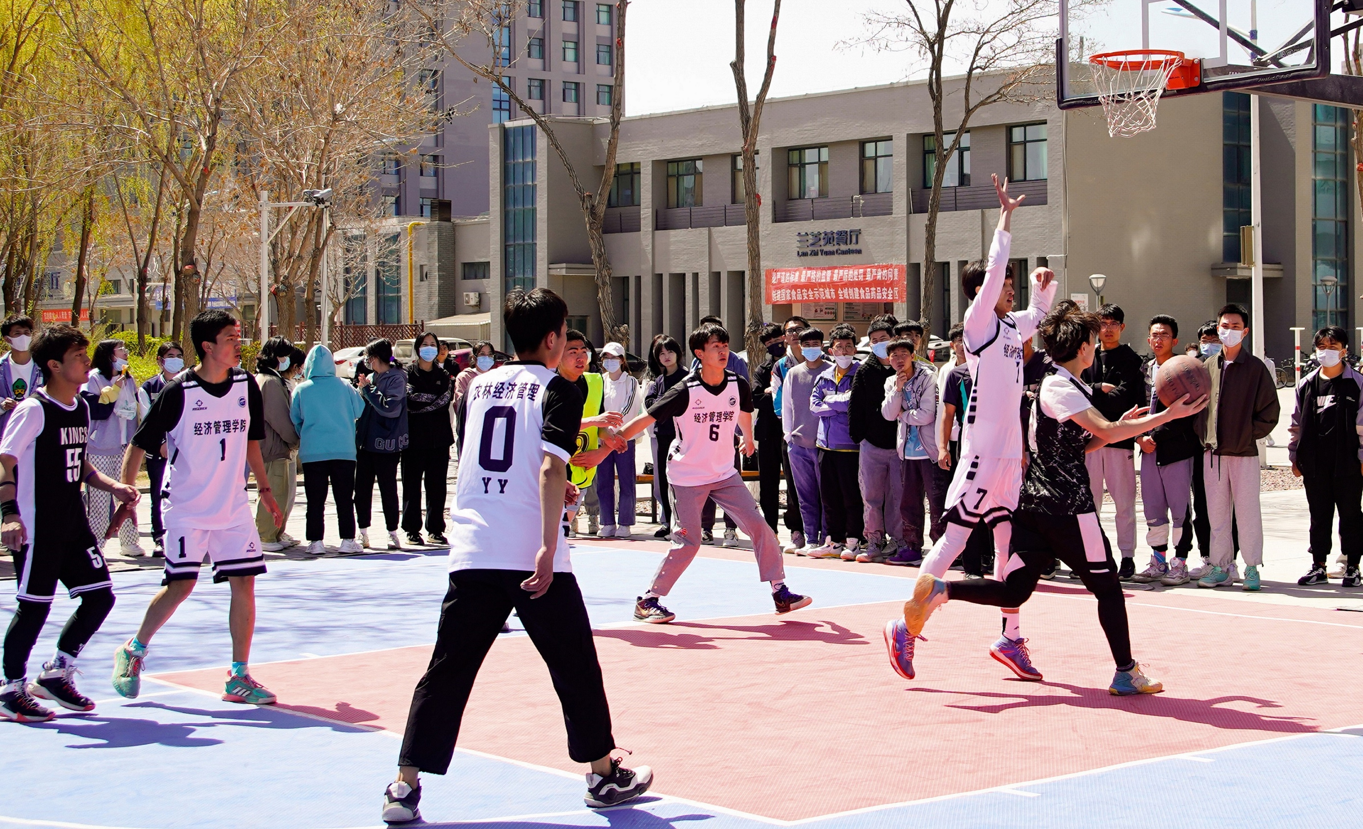 男子“经春杯”篮球决赛和女子“迎春杯”篮球决赛于贺兰山校区篮球场热火朝天的进行着。