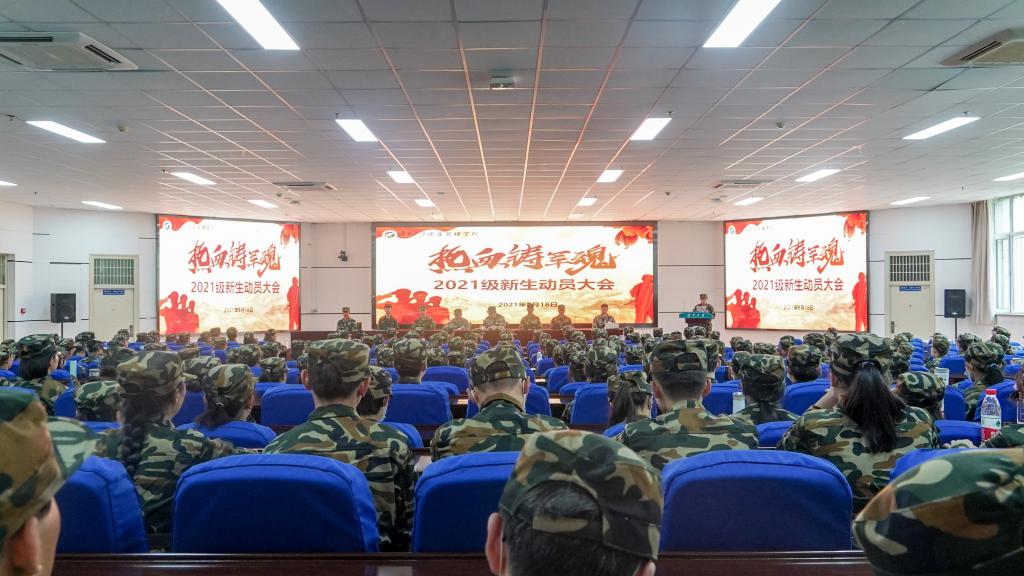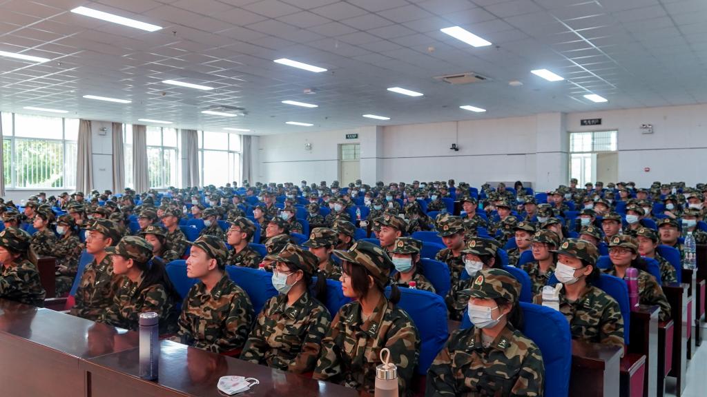 (西部发展研究院)2021级本科生军事训练开训大会在贺兰山校区文荟楼东报告厅顺利举行。91九色