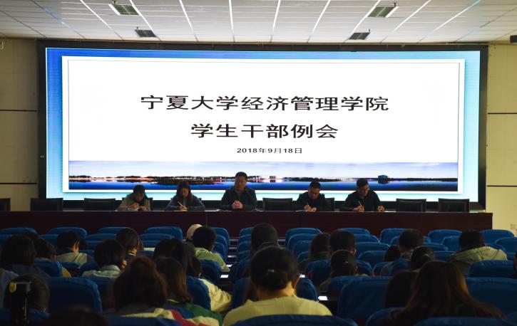 于文荟楼东报告厅召开了本学期第二次学生干部例会。院党委副书记程胜利、学生工作办公室主任黄旭兴、各年级辅导员及学院全体学生干部到场参加。