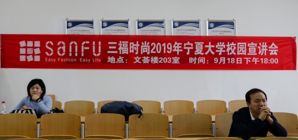 贺兰山校区文荟楼203室,三福百货召开了“三福时尚19届校园宣讲会”,此次宣讲会旨在扩大毕业生的就业面、增加毕业生的就业机会,吸引了众多有求职意向的大四学生前往参加。
