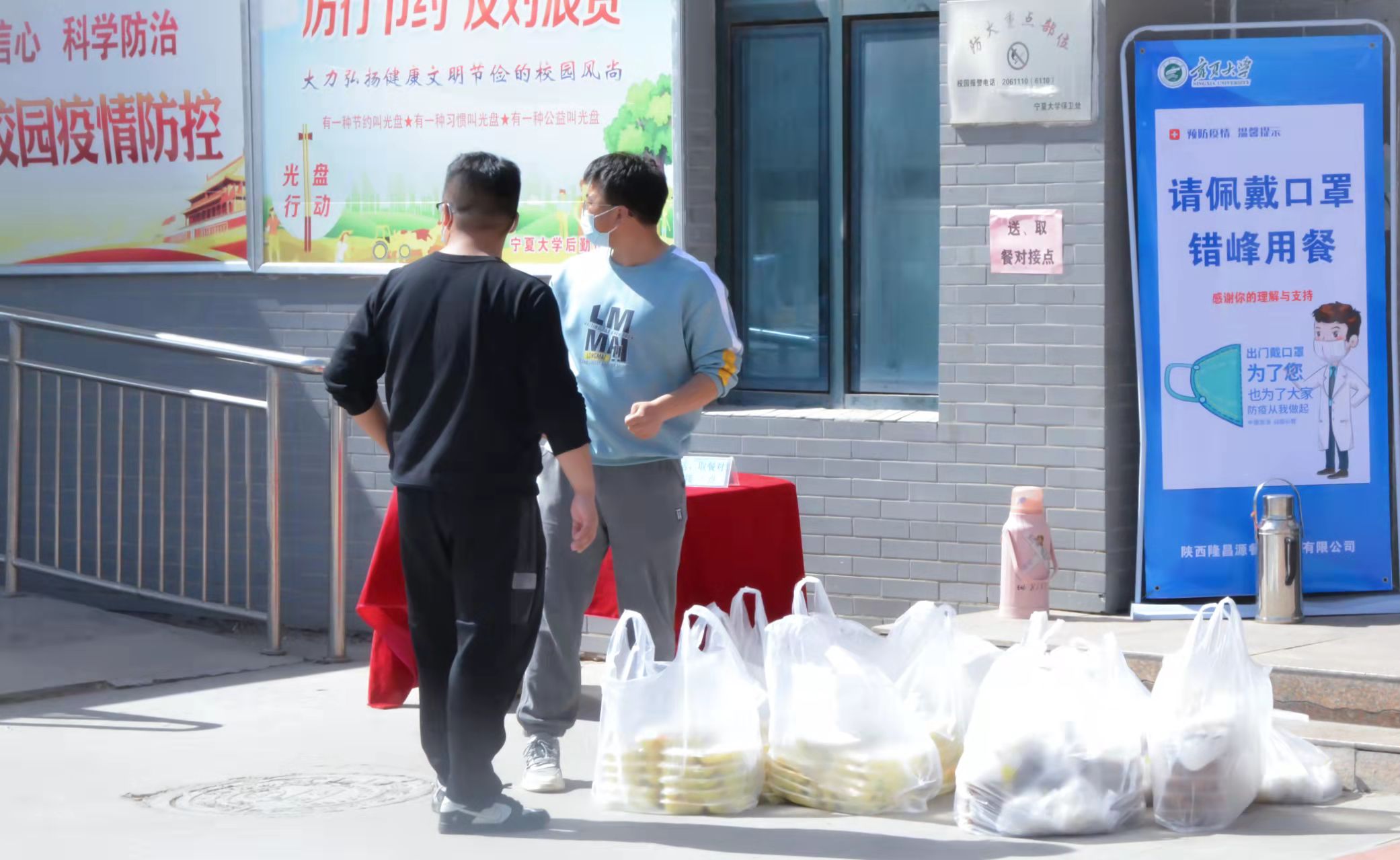 党委副书记马建宏、学生工作办公室辅导员孙文元组织学生青年突击队服务封控学生,师生共同为封控学生送餐,齐心协力,共同防控,保证疫情防控工作有力有序进行。