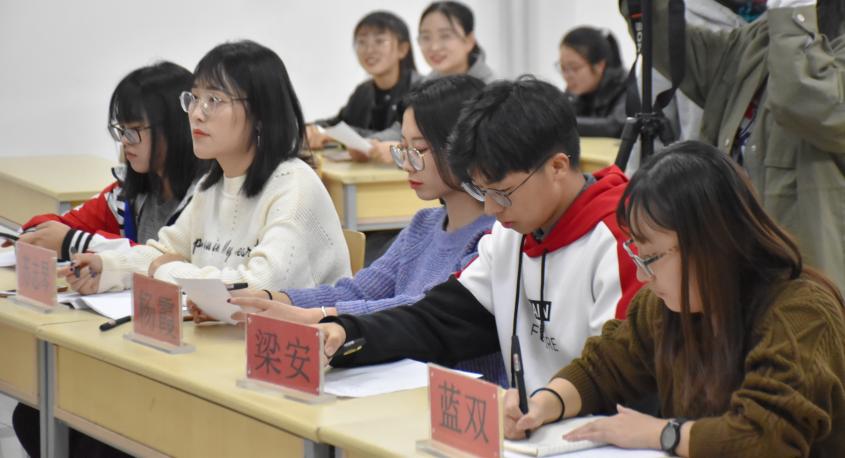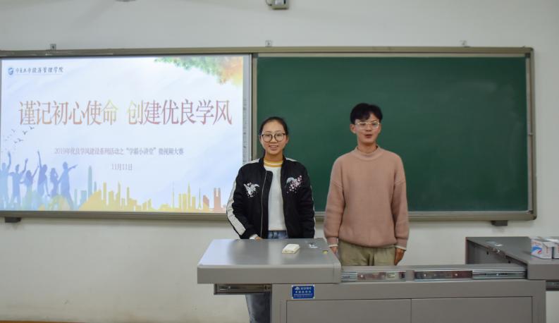 的苏志琴、17级会计学二班班长蓝双、19级经济学班及19级工商管理类一班班主任助理梁安、罗妍担任评委。19级工商管理类一班丁永鑫和19级经济学(金融)班汪慧担任主持。