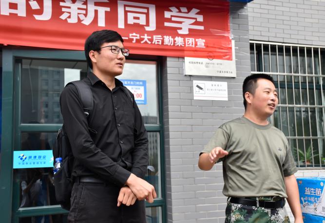 党委副书记程胜利、学生工作办公室主任黄旭兴、专职辅导员艾萨以及17级辅导员张景在男生公寓门前对其进行慰问。