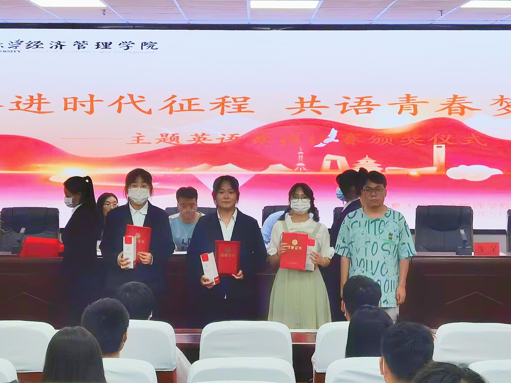 “第四届英语趣味配音”比赛和“奋进时代征程,共语青春梦想”主题英语演讲比赛颁奖仪式在贺兰山校区文荟楼316会议室顺利举行。学生工作办公室辅导员艾萨·阿尤普、禹文杰,团委副书记杨小红、柳虎威,阳光英语俱乐部负责人马宁参加会议,会议由郭存山主持。