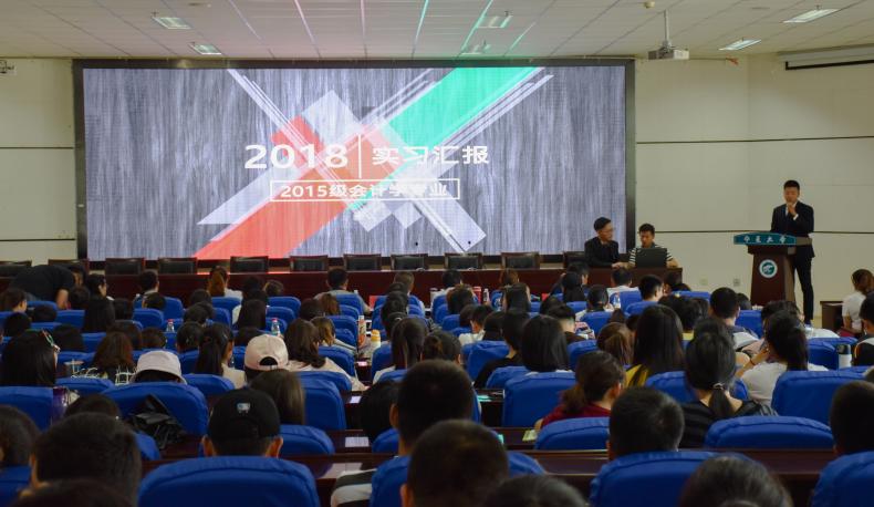 汇报伊始,马晓云介绍了此次来宾及评委,在张逸宣读专业实习报告评奖细则后,来自2015级八个专业代表队的同学们开始了他们绘声绘色的实习报告。