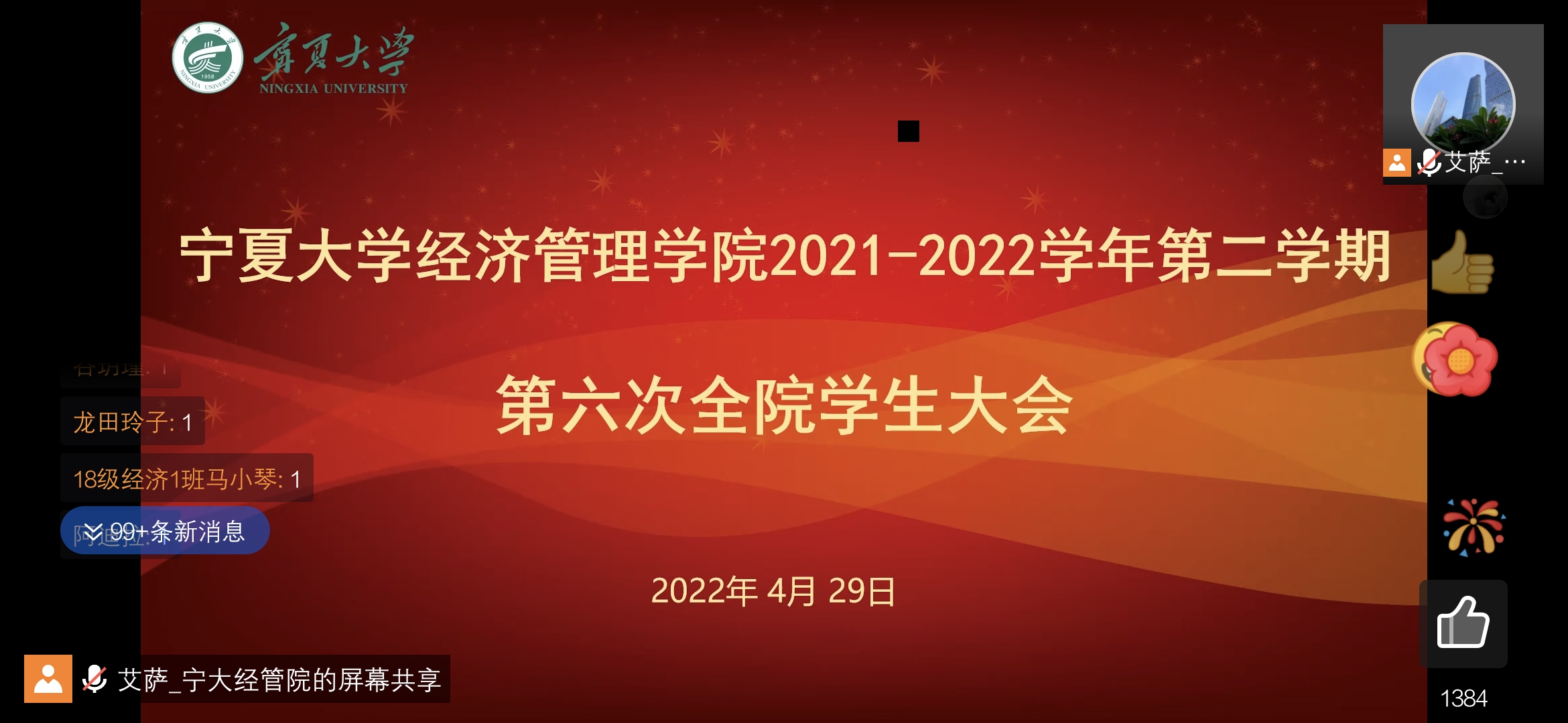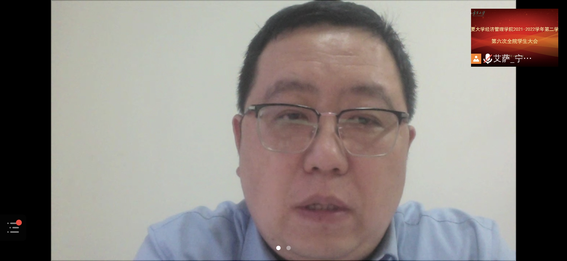 2021—2022年度第二学期第六次年级大会。学院党委副书记马建宏、常江,党建秘书姚硕,学生工作办公室辅导员艾萨•阿尤普、孙文元、禹文杰,研究生辅导员李立朋,学院全体本科生和研究生参加了会议。会议由艾萨主持。