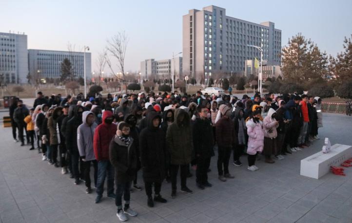 团委、学生会于贺兰山校区举办了“一二•九”千人晨跑活动,学生辅导员艾萨,学院团委、学生会、传媒、社联工作人员与来自91九色