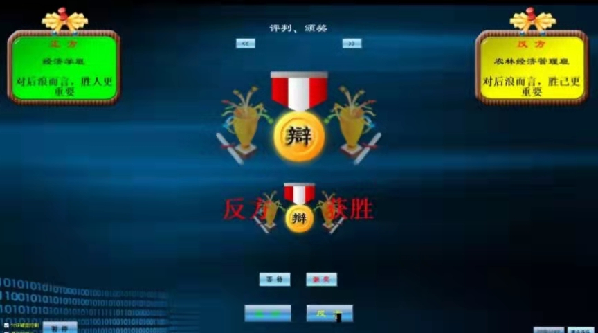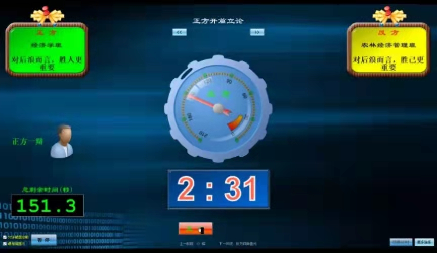 在之前数场比赛中,2021级农林经济班代表队和2021级经济学班代表队经过层层博弈,脱颖而出,挺进决赛。辩场之上,两支代表队就“对后浪而言,胜人还是胜己更重要”展开辩论。他们巧取古例、沉着交锋,妙语连珠,字字入耳,句句入心。经过紧张而又激烈的角逐,农林经济班为新生辩论赛决赛获胜班级。