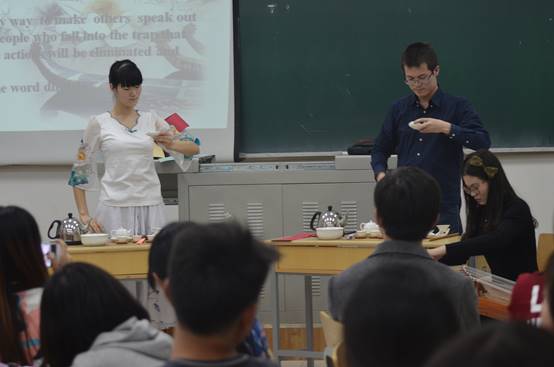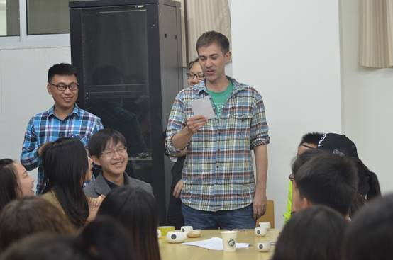 晚7点,活动成员如约而至。在主持人的提示下,外国友人与同学们自发组成5个小组,在文科楼前进行了“单词接龙”的小游戏。每个小组通过明确的分工按顺序完成相关体育项目,并在规定时间内尽可能多地传递单词。外国友人们与中国学生在相互交流与配合中,加深了默契,增进了友谊。接下来的核心环节“视频表演”中,5个小组在观看影视作品的基础上进行表演。角色分配完毕,在短时间的紧张准备后,精彩有趣的视听盛宴展现在同学们面前。《老友记》、《三傻大闹宝莱坞》等影视作品中的经典片段被组员们演出了新意,中国歌曲与外国影视的结合体现了文化的交流与碰撞。活动最后,美国友人用一段炫酷的rap把现场的气氛推向了高潮,为本学期的英语角活动画上圆满的句号。