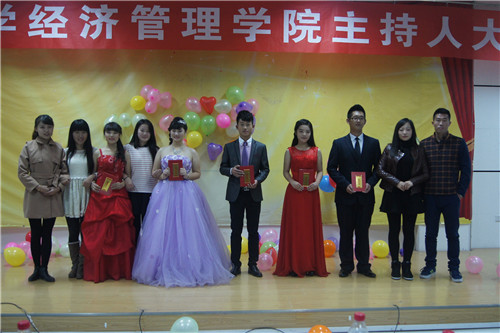 团委、学生会文艺部、传媒中心、社团联合会联合举办。30位大众评审以及经管学院2014级全体同学参加了此次活动。 经过初赛的选拔,共有九位选手进入决赛。本次比赛共有三个环节。第一个环节为自我介绍,主题为“我的家乡”,其中三号选手高梦燕的歌声、四号选手范智超和五号选手田雨沛的相声以及七号选手马婷的流星轮为大家展现了他们不一样的家乡。期间赵强同学为大家带来一首“好久不见”将气氛推向高潮。第二环节是才艺表演,选手们以歌声、舞蹈和相声等多种形式为大家带来了他们的十八般武艺,精彩绝伦的表现赢得了观众的阵阵喝彩。经过前两轮的选拔共有六位选手进入第三环节“模拟主持”,他们两两搭档为我们展示了经管学子不一样主持风采。最后,评委对他们的表现进行了点评并由大众评审投票选出最后的得奖选手。经过激烈的角逐,本次决赛一等奖的桂冠由范智超摘取,高梦燕和唐正分别获得二等奖和三等奖,杜虹瑾和田雨沛获得最佳风采奖。大赛在学生会主席张鹏龙的一首“无所谓”中走向了尾声。