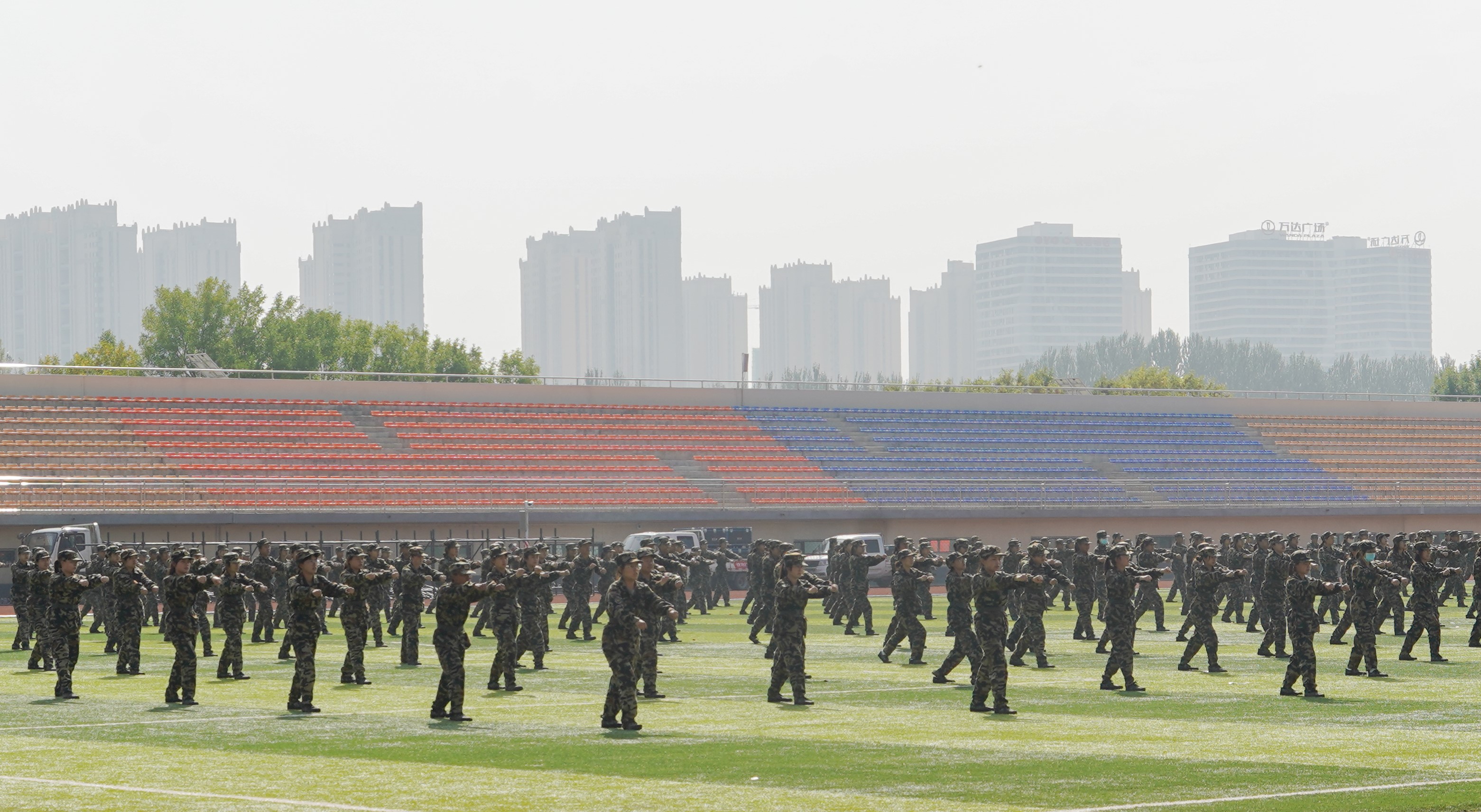 熠熠骄阳下,经管学子整装待发,绿色的军装彰显青春的韵味,稚嫩的脸庞充满着对未来的憧憬。怀远操场上,红色的跑道与绿色的草坪交相呼应,身着迷彩军装的同学们在这片平地上展现着三营七连的风姿风采,打着由教官们改进的九动擒敌拳,一提一踏,一抓一推,动静之间,经管学子们在不断的磨合中增添了默契,懂得了集体的重要性,不断的磨砺自我。