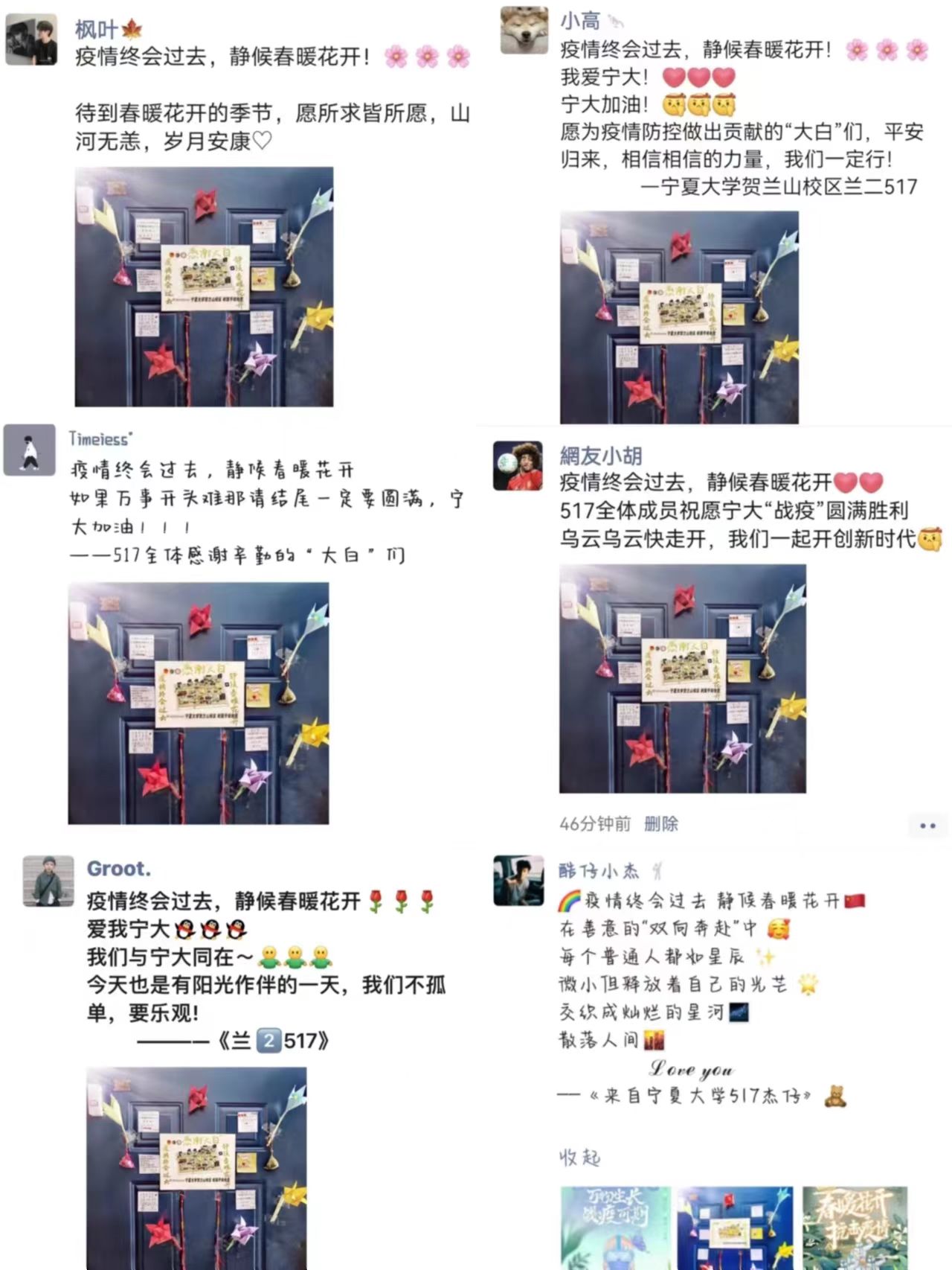 天意怜幽草,人间重晚情。经管师生彼此守望,相互奔赴,我们坚信没有一个冬天不可逾越,没有一个春天不会来临。爱与希望点亮万家灯火,映照人间温暖。