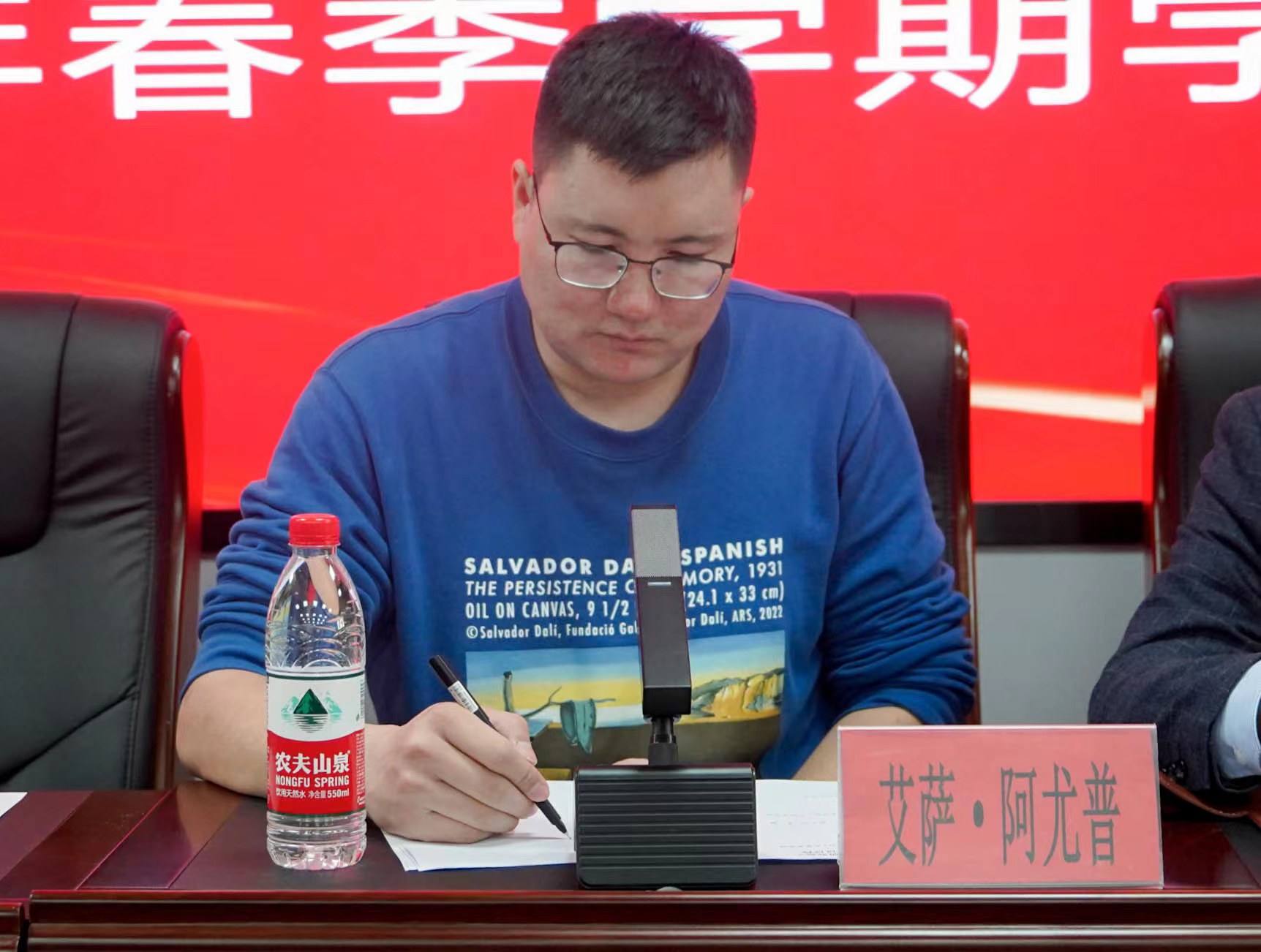 (西部发展研究院)党委书记崔明堂,党委副书记常江,学生工作办公室负责人艾萨•阿尤普,党建秘书姚硕,团委副书记孙文元,研究生辅导员李杨、辅导员张春娜以及全体团学骨干参加会议。会议由艾萨主持。