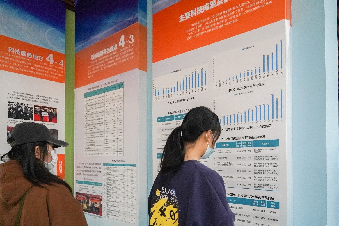 讲解员先是帮助同学们重温了我校的历史沿革,从校徽、校训、校歌等角度介绍着我校的建校初心与昔日征程,六十余年的发展也无不展示了一代又一代宁大人对“尚德、勤学、求是、创新”的追求与实践。