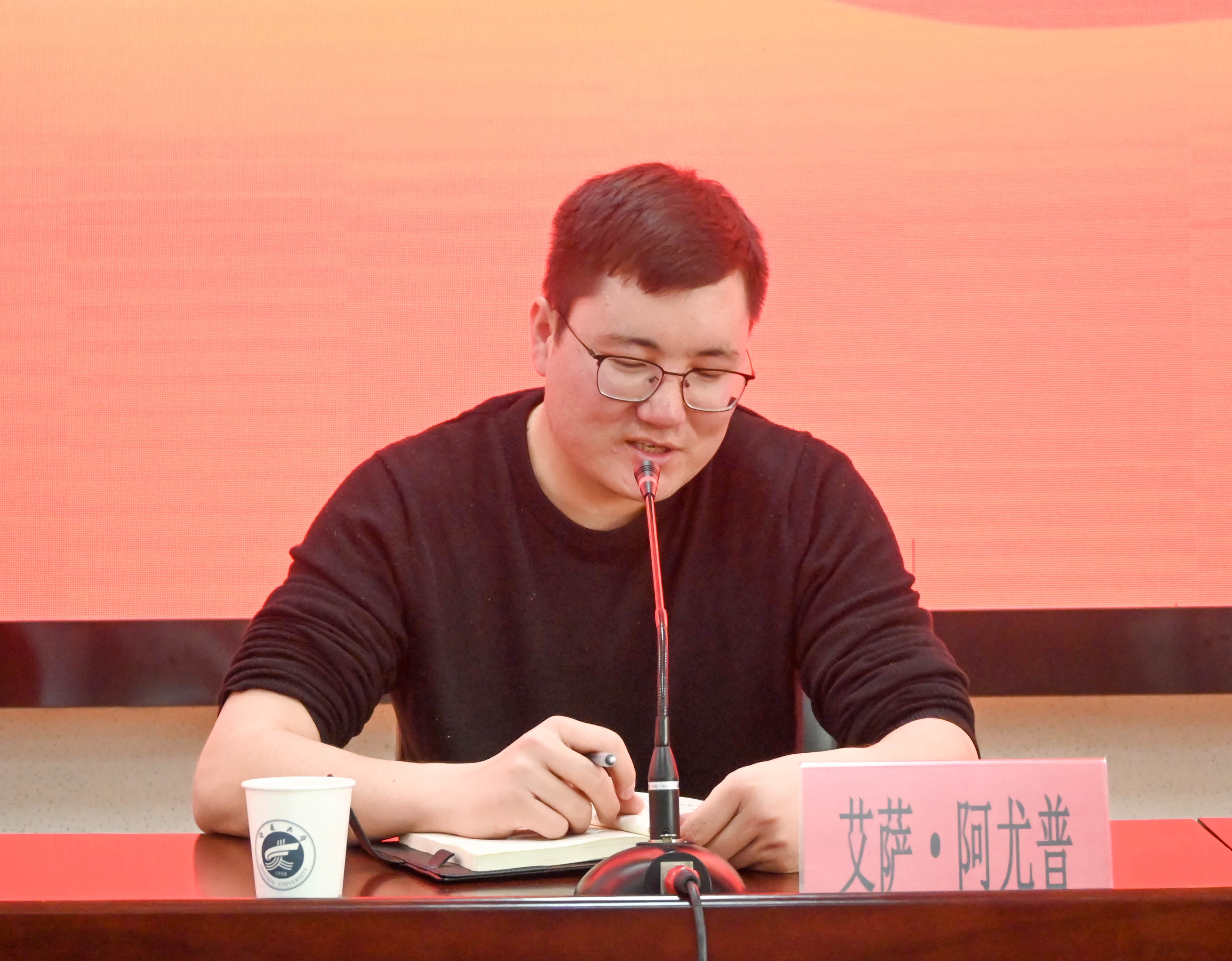 (西部发展研究院)党委副书记常江,学生工作办公室负责人艾萨·阿尤普,学生工作办公室辅导员孙文元,研究生辅导员张春娜及2022级全体同学参加会议。会议由艾萨主持。
