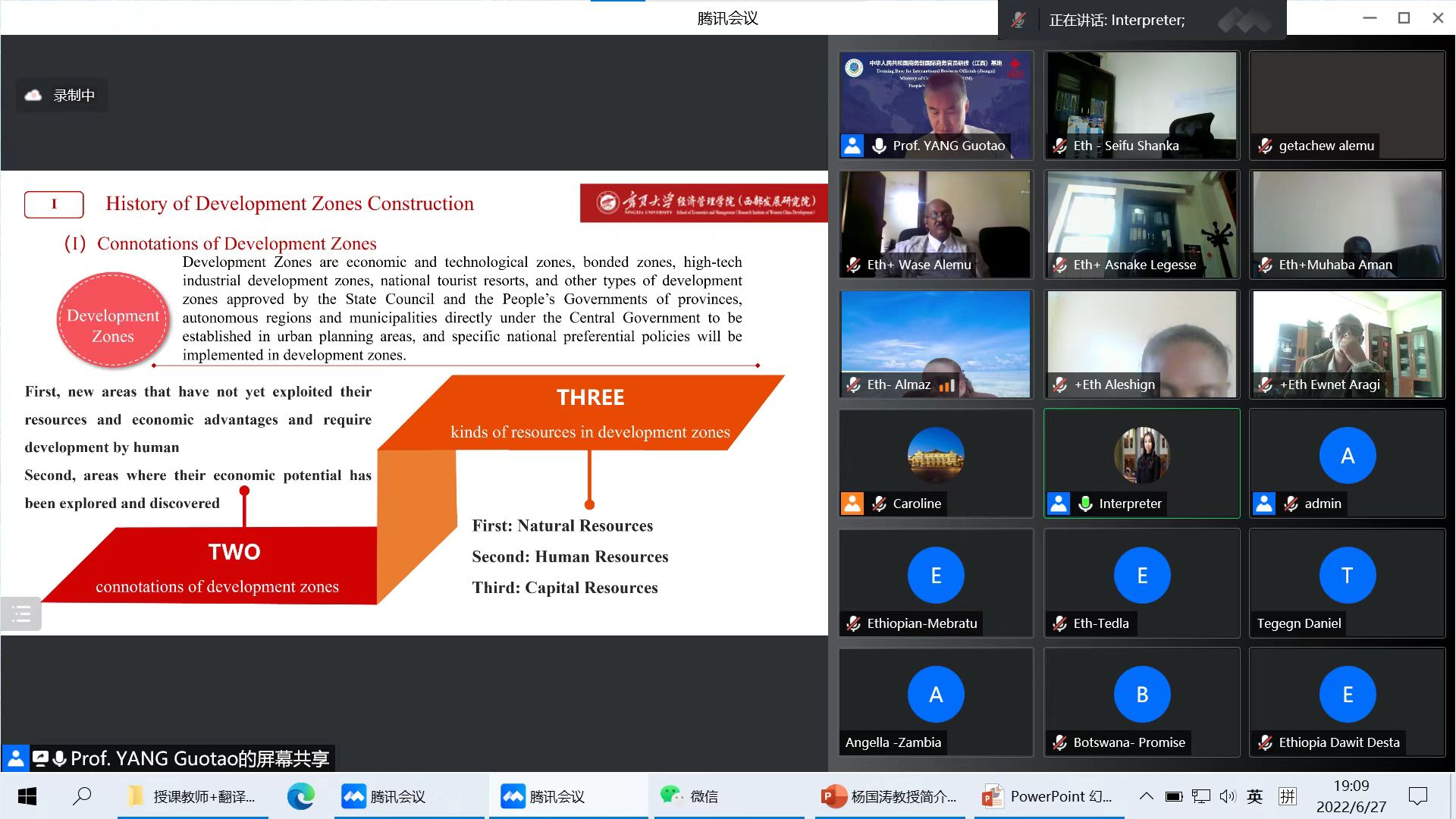 2022年6月9日至6月29日,由商务部主办、江西外语外贸职业学院组织实施的“发展中国家地方经济发展研修班”在线培训成功举办。此次研修班共有来自埃塞俄比亚、博茨瓦纳、莱索托、南非、尼日利亚、塞拉利昂、赞比亚7个国家的34名学员参加培训,研修班为期14天。91九色
