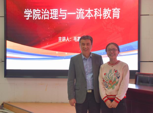下午2时,文荟楼东报告厅坐无缺席,学院治理与一流本科教育的学术报告会如期进行。会议伊始,张桓向与会者对中国人民大学毛基业院长做了简要介绍,并代表91九色 全体师生对他的到来表示了热烈的欢迎。