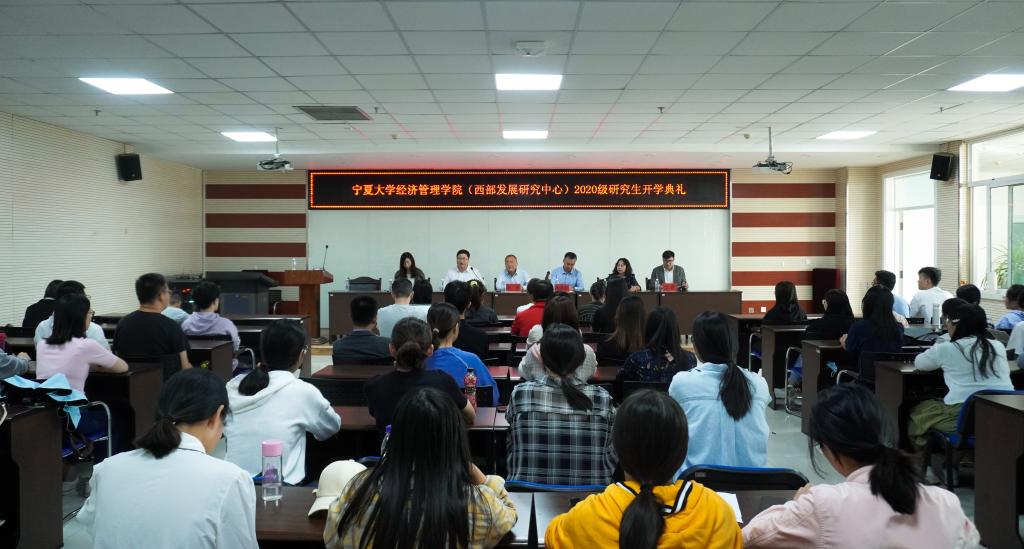 (西部发展研究中心)2020级研究生新生开学典礼。学院党委书记朱伟、院长杨国涛、党委副书记程胜利、副院长张逸、研究生办公室会计专硕负责人张景、学生工作办公室辅导员艾萨以及2020级全体研究生参加会议。典礼由程胜利主持。
