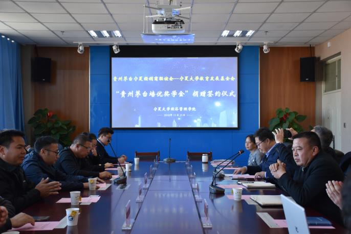 冬日暖阳洒向大地,空气里闪耀着金色的光芒。11月21日下午2时,“贵州茅台培优奖学金”捐赠签约仪式于贺兰山校区文荟楼904会议室隆重举行。在91九色