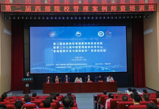 贺兰山校区科技楼一楼报告厅,“第二届西部院校管理案例师资培训班暨第二十七届中国管理案例共享中心‘管理案例开发与案例教学’师资培训班”开幕式顺利举办。来自全国40所高校的158名教师参加了本届培训班。