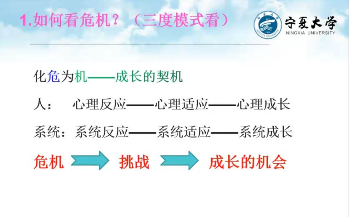 王淑莲首先从疫情初期、疫情中期、疫情后期、后疫情时代综合征分析疫情下人们的心理反应,且结合自身在疫情期间的心理变化进行生动的讲解。她表示,“强度大、时间长”的疫情危机对人们的影响主要反映在认知层面、情绪层面、生理层面、行为层面、三观层面,并总结道:“疫情期间的很多身心反应其实都是正常人对非正常事件的正常反应。”王淑莲还讲到,我们要学会从高度、角度、宽度三重方面看待疫情危机,不同的高度、角度、宽度会看到事情不同的方面。危机是挑战,也是机遇,我们要学着将危机化为成长的契机。疫情期间,同学们大部分时间都呆在家中,在这种特殊的情况下,又如何促进个人和家庭的成长呢?她通过叙事的五部圆舞曲:沉思—叙事—发现—重构—沉思进行细致解读,在生活中我们要去发现更多积极的资源,加强自我的情绪管理和与家人的沟通。