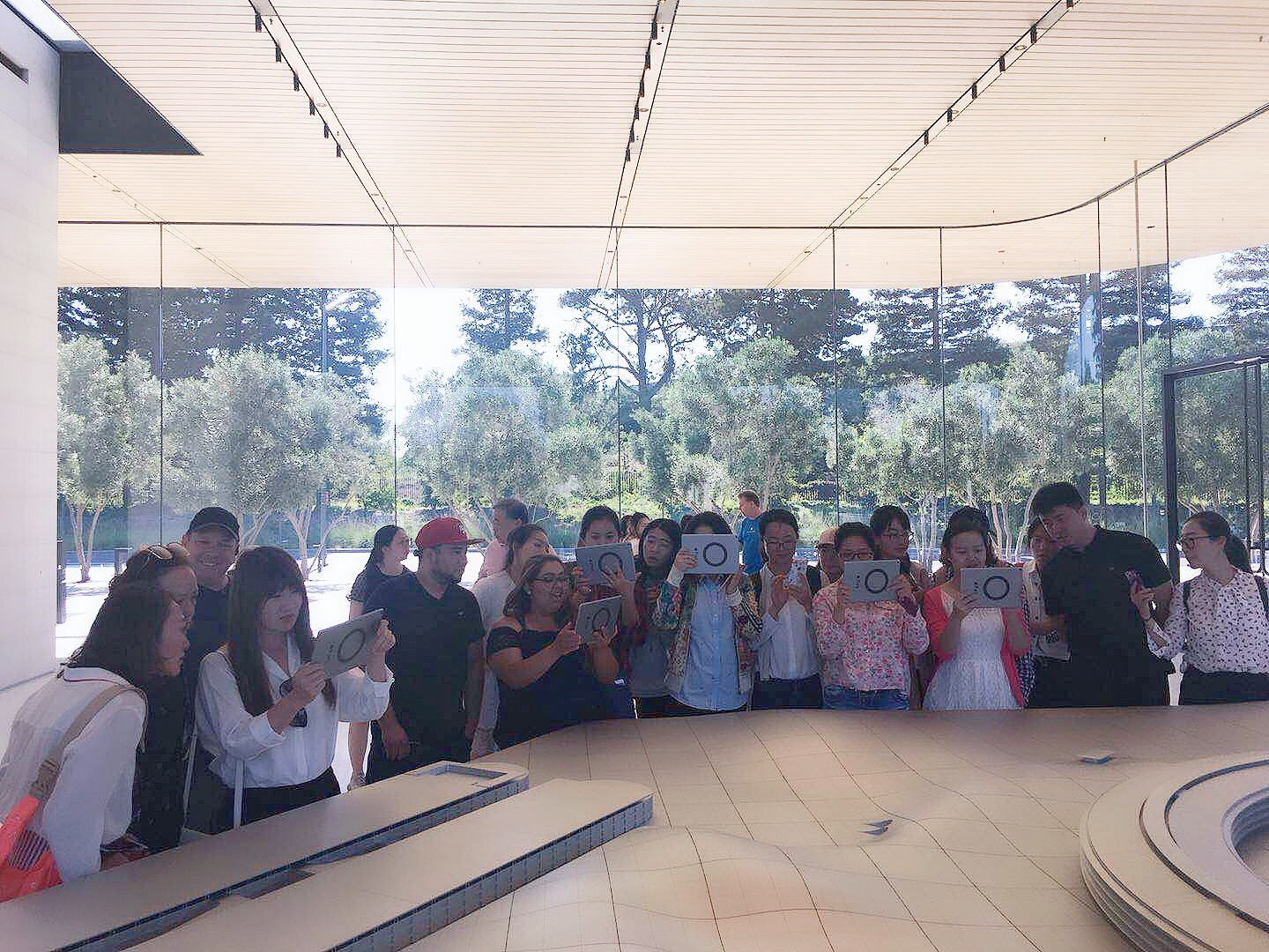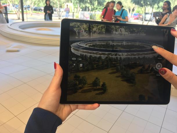 MBA师生一行在苹果总部参观中心通过Ipad体验AR技术在公司建筑概念展示中的应用 |