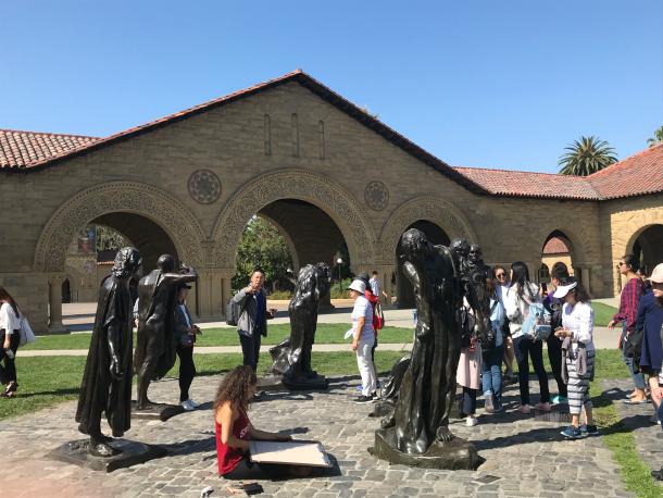 MBA师生一行在斯坦福校园内罗丹雕塑作品前留影 |