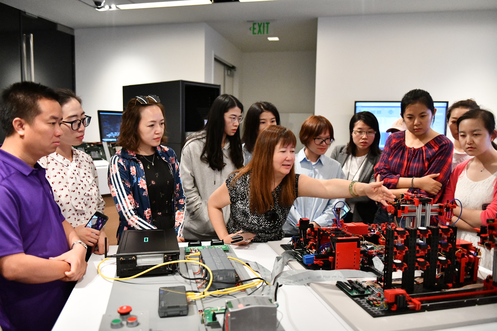 MBA师生一行演示慧与公司无人机生产流水线的机械模拟模型 |