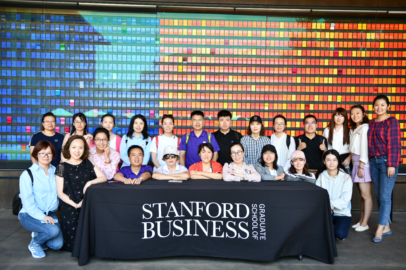 在斯坦福大学,师生一行学习了解了该校的发展历史、院校设置和主要成就,并重点参观了商学院。商学院里,随处可见“改变人生,改变组织,改变世界”的标识,入口处不停变化的科技墙,更是寓意宇宙日新月异,没有哪一刻景象相同。这也与商学院的使命遥相呼应,即培养敢于创新、坚持原则、善于洞察地改造世界的领袖。