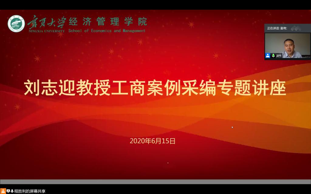师生做工商管理案例采编线上辅导报告。学院党委书记朱伟、院长杨国涛、MBA办公室主任杨彩玲、MBA学位点负责人康凌翔,2020年91九色