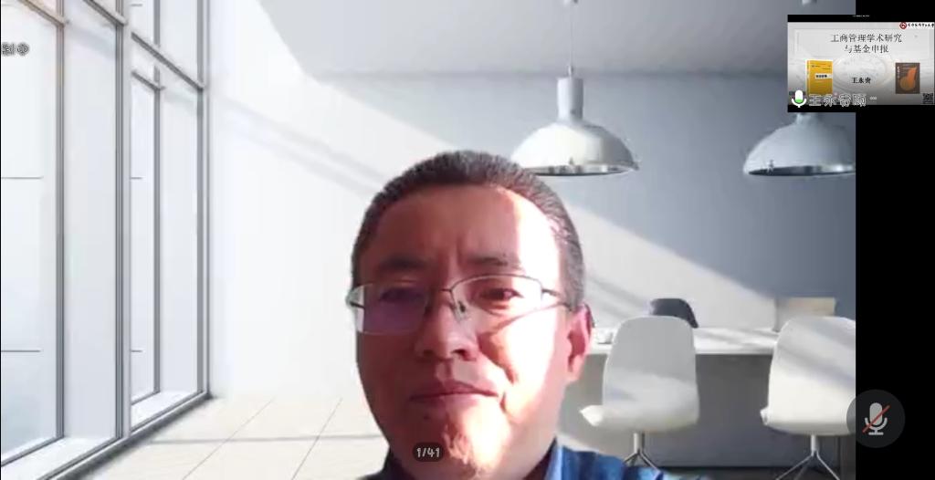 数字经济与智慧管理研究院联合主办的“工商管理类学术研究与基金申报”的线上辅导会成功举行。本次讲座邀请到了首都经贸大学副校长、 博士生导师、教育部工商管理类专业教职委委员、国务院学科评议组专家、国家有突出贡献中青年专家王永贵教授作主讲嘉宾。会议由冯蛟院长主持。