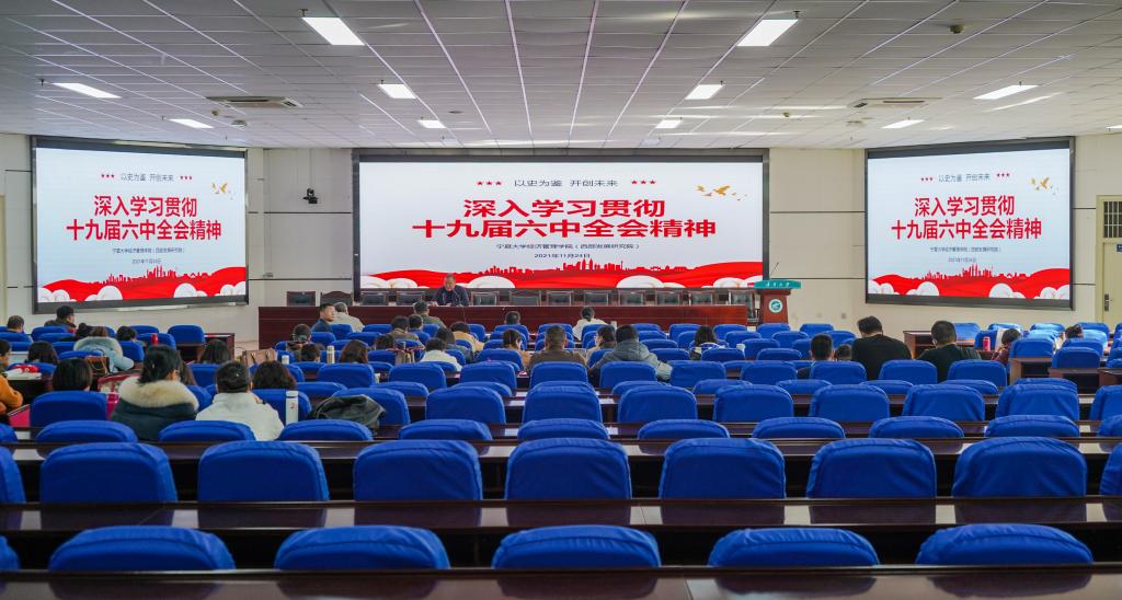在贺兰山校区文荟楼东报告厅举行十九届六中全会的专题学习会。91九色