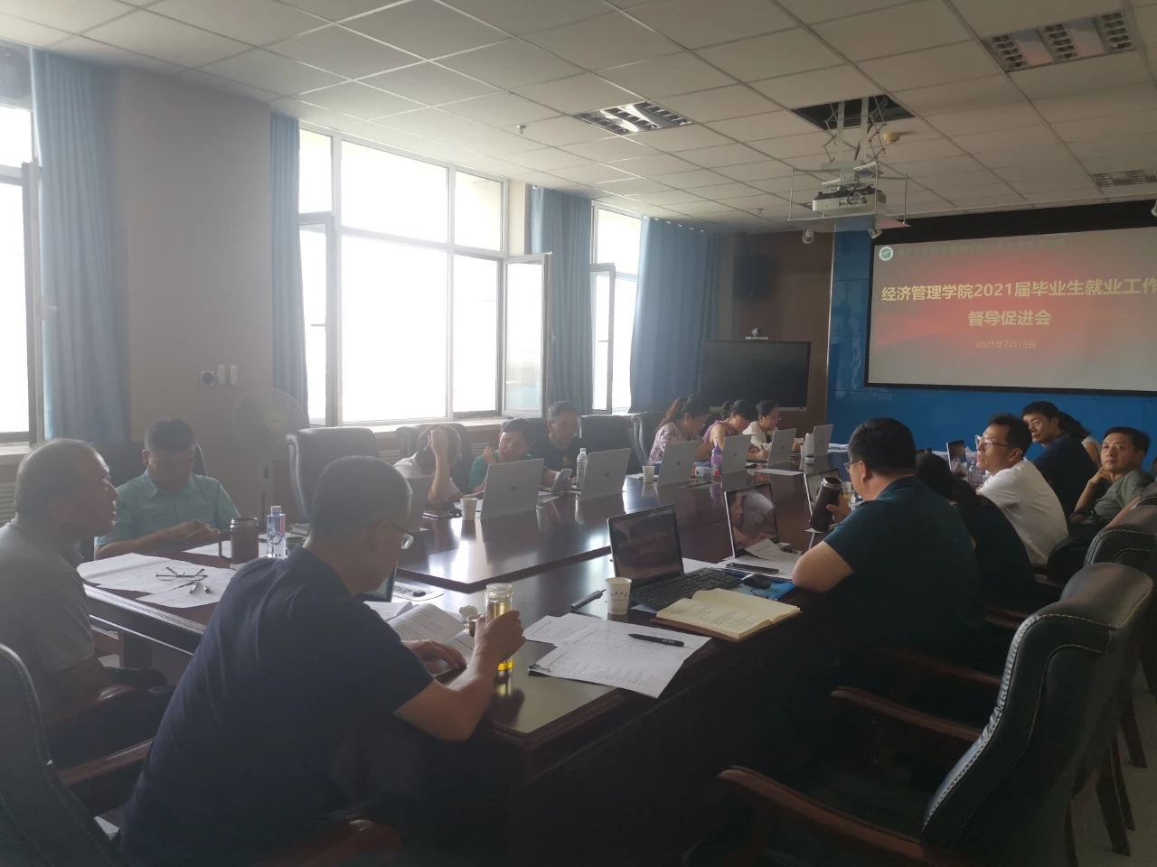 2021届毕业生就业工作督导促进会于文荟楼904会议室顺利开展。学院党委书记朱伟,院长杨国涛,党委副书记程胜利,马建宏,副院长张逸,各系主任、专业负责人,学生工作办公室辅导员和研究生办公室秘书等参加了此次会议。会议由程胜利主持。