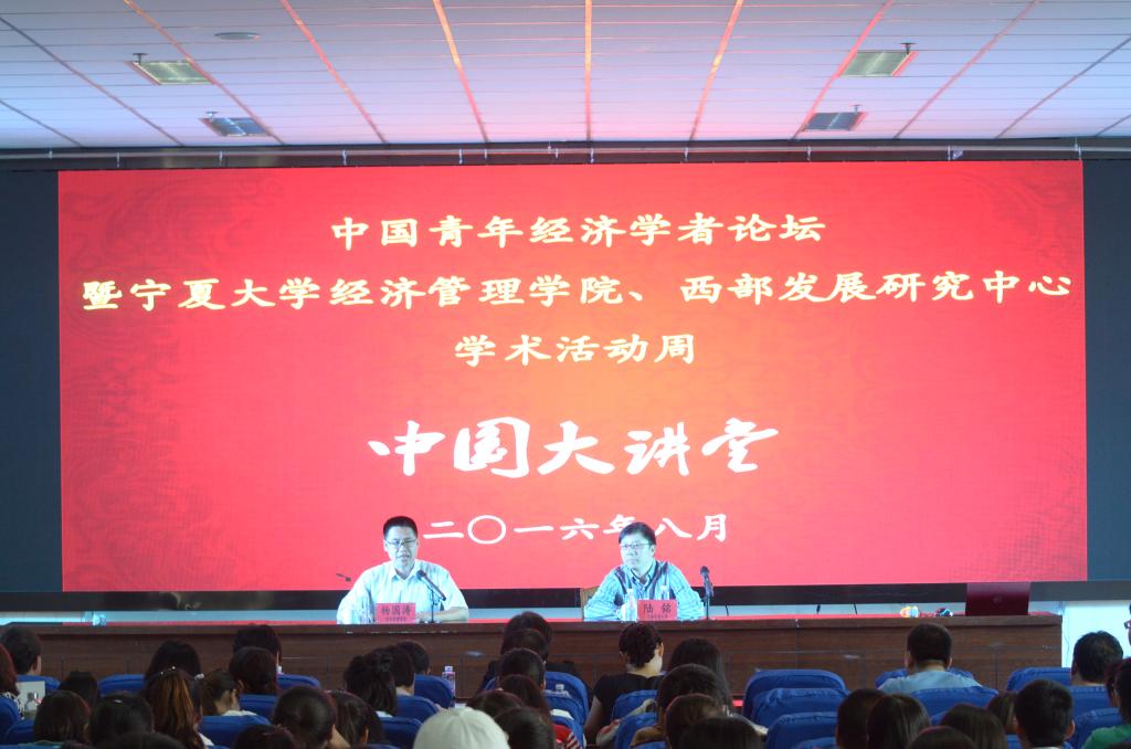 ,当天晚上就直接到老城区,调研了解银川市城市布局、交通和街道。陆铭教授在题为“宜居大城与大国发展”演讲中,提到银川市的发展,也是和我们传统思维很不一样的认识,感觉我们司空见惯的东西,陆老师走走看看,就会出思想。陆老师把经济学道理讲的通俗易懂,但他提出的观点和建议,却对中国实施大国发展战略有重要意义。陆铭老师思路清晰、见解深刻,体现了经济学的魅力,在场座无虚席,师生兴趣盎然,受益匪浅。陆铭老师不仅受到经济学界同仁的认可,而且还深受同学们的喜爱。