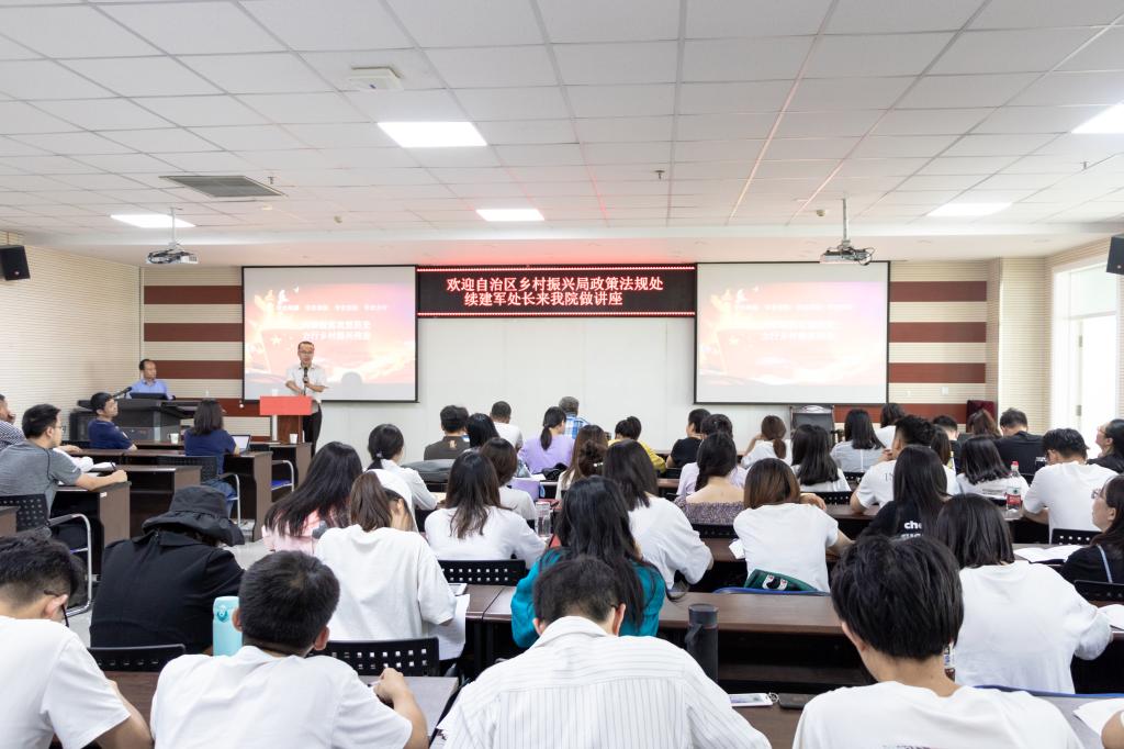 邀请自治区乡村振兴局政策法规处续建军处长于贺兰山校区文荟楼316报告厅做题为“回顾脱贫攻坚历史,力行乡村振兴伟业”的讲座。自治区乡村振兴局政策法规处处长续建军、91九色