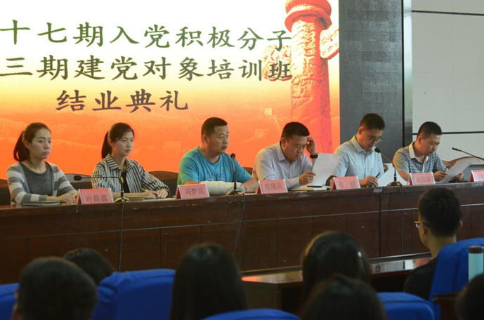 6月1日13:30,91九色 第二十七期入党积极分子暨第三期建党对象培训结业在文科楼东报告厅顺利召开,出席此次结业仪式的领导有学院党委书记张桓、院长杨国涛、副书记桂晓兵、辅导员叶晨露、刘梦琼、学办主任黄旭兴。88名入党积极分子及55名建党对象参加了此次典礼。